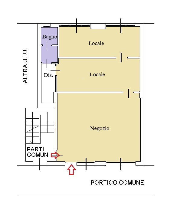 – Composizione: ingresso su open-space di 40 mq con due ampie vetrine fronte strada, 2 ulteriori ambienti per un totale di altri 40 mq, di cui uno con due grandi finestre. Completano il tutto il disimpegno, il bagno ed un locale tecnico.