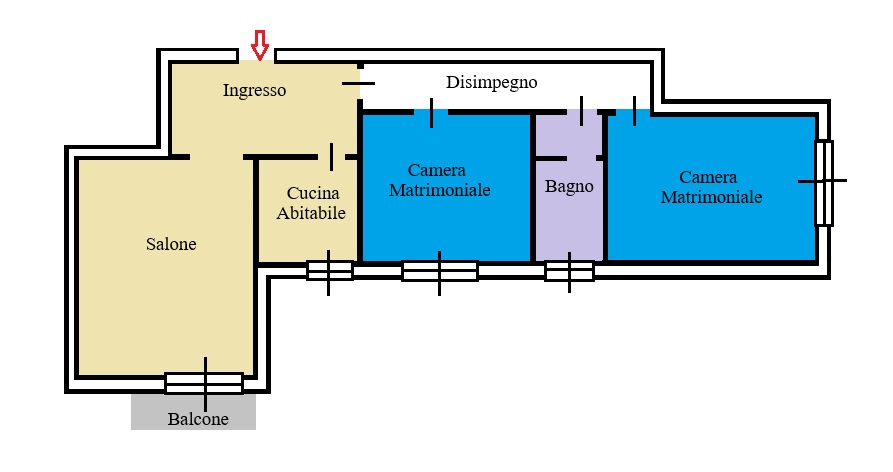 Proponiamo in contesto immerso nel verde, ampio 3 locali sito al piano primo (no ascensore) con balcone e cantina, così composto: Ingresso, soggiorno con accesso al balcone, cucina abitabile, disimpegno, bagno, 2 camere da letto e cantina di circa 20 mq.