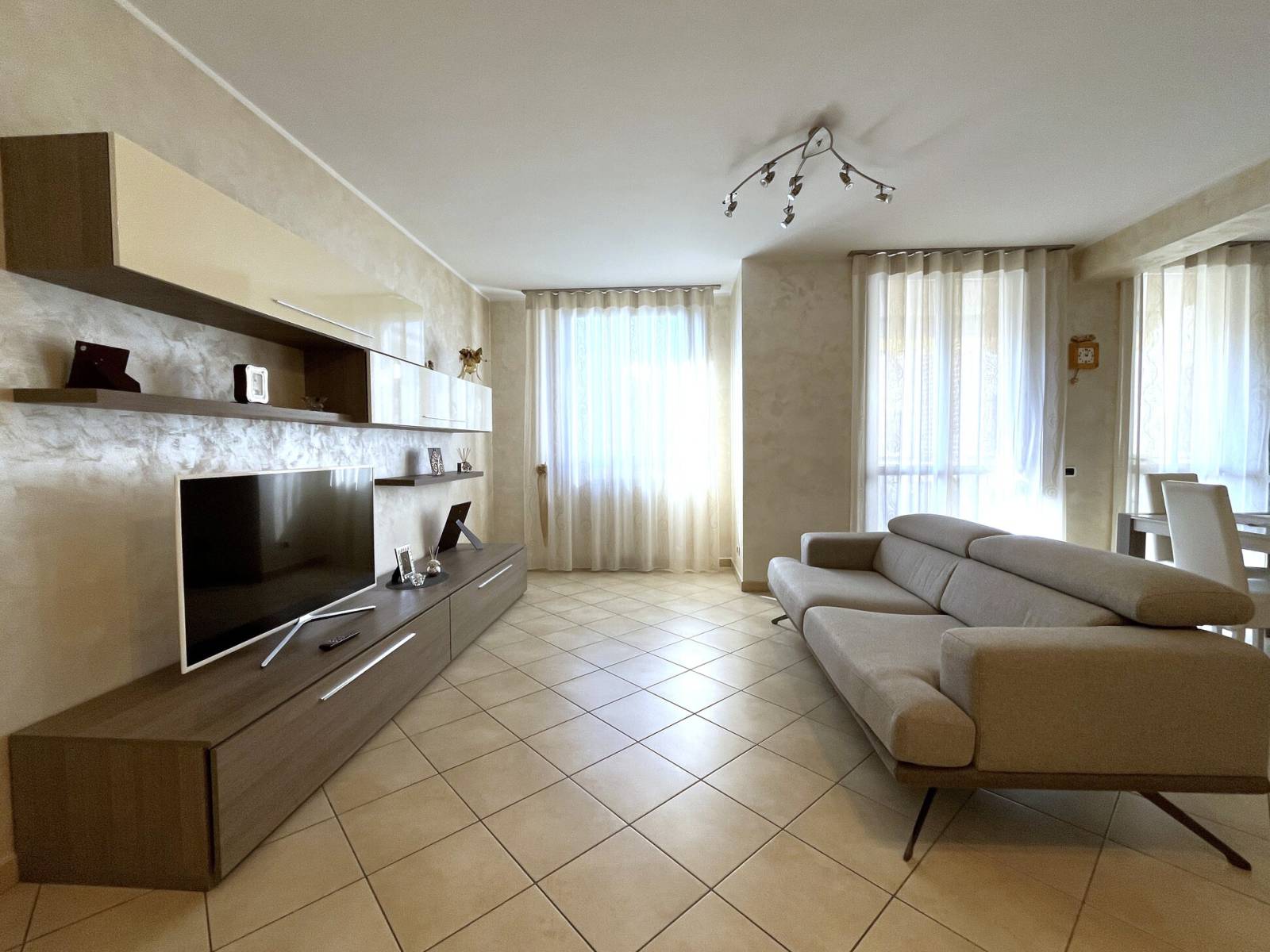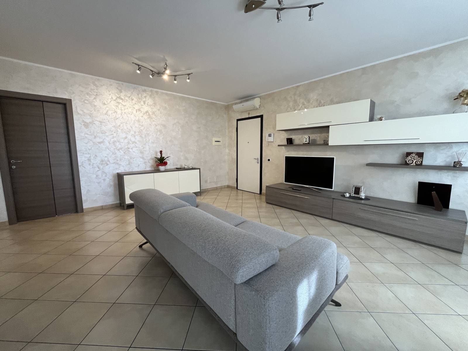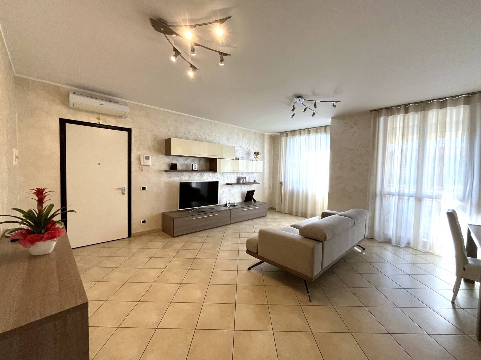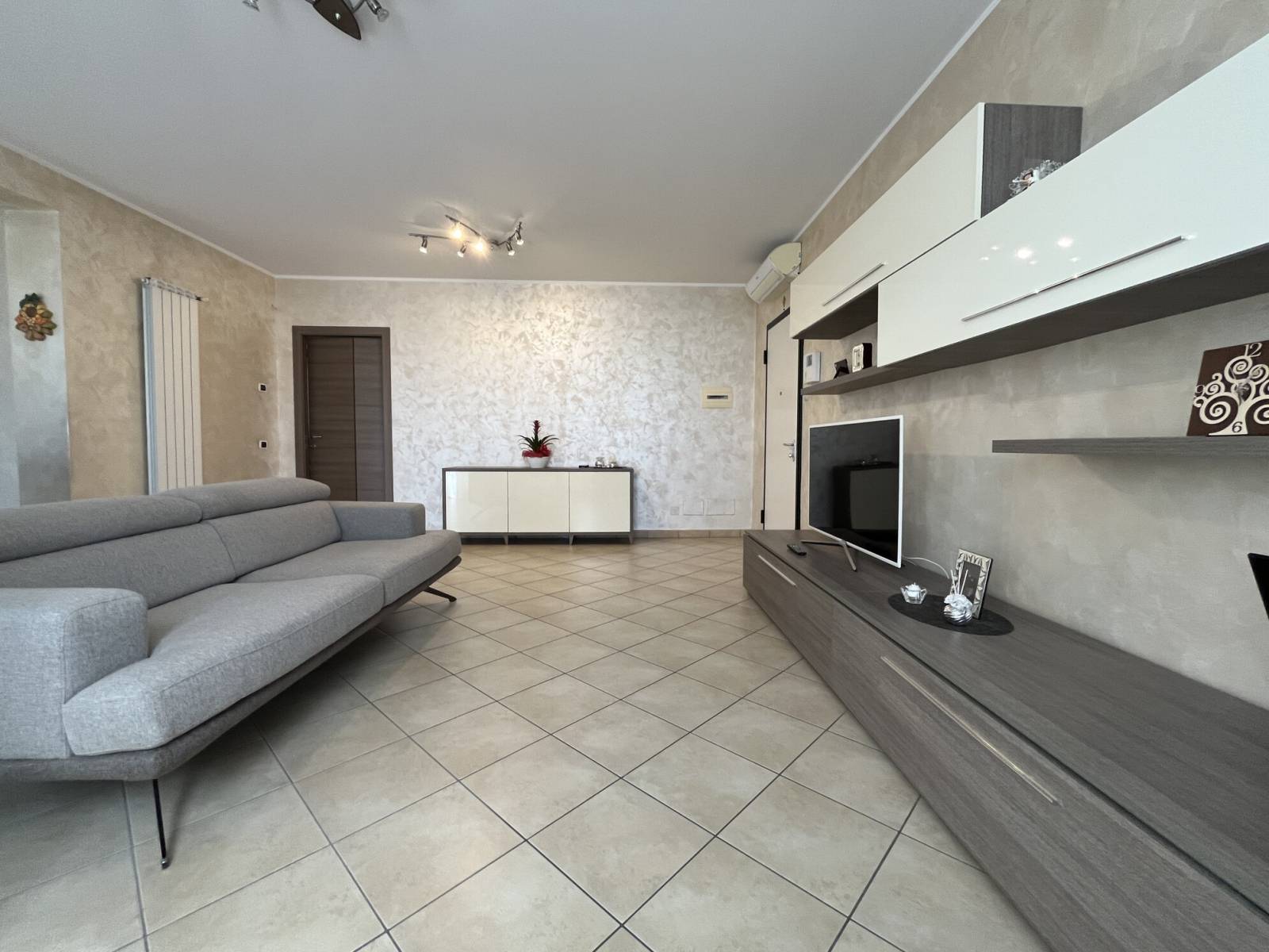 L’appartamento è così suddiviso: ingresso sull’ampio living con cucina a vista ed accesso al terrazzino vivibile, disimpegno, bagno padronale, camera da letto matrimoniale con balcone, secondo bagno, seconda camera da letto, ripostiglio e cantina.