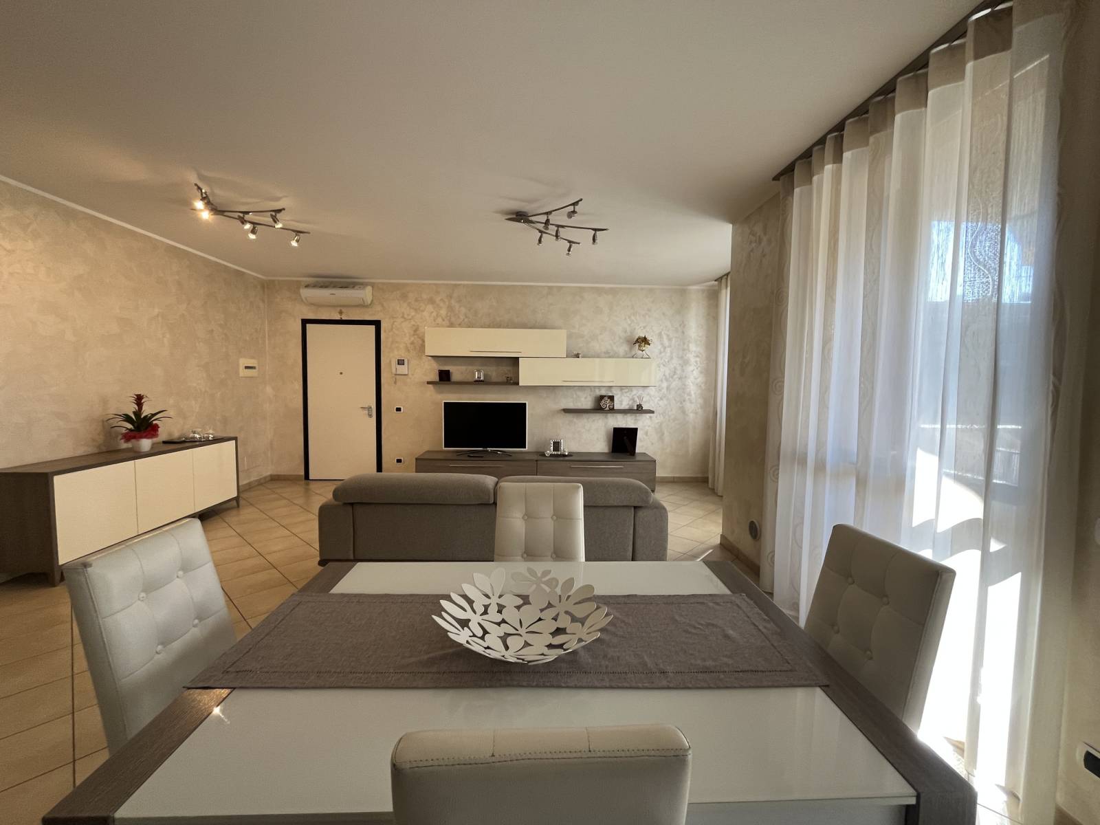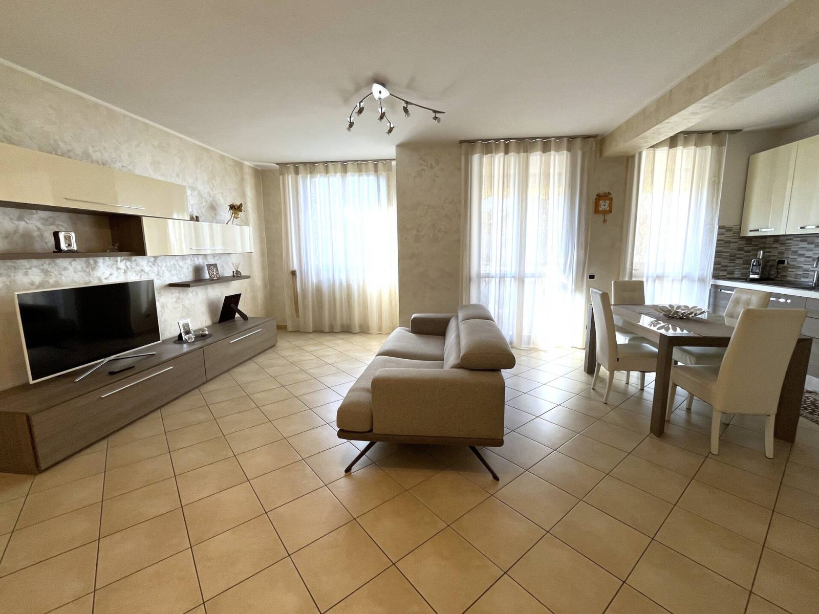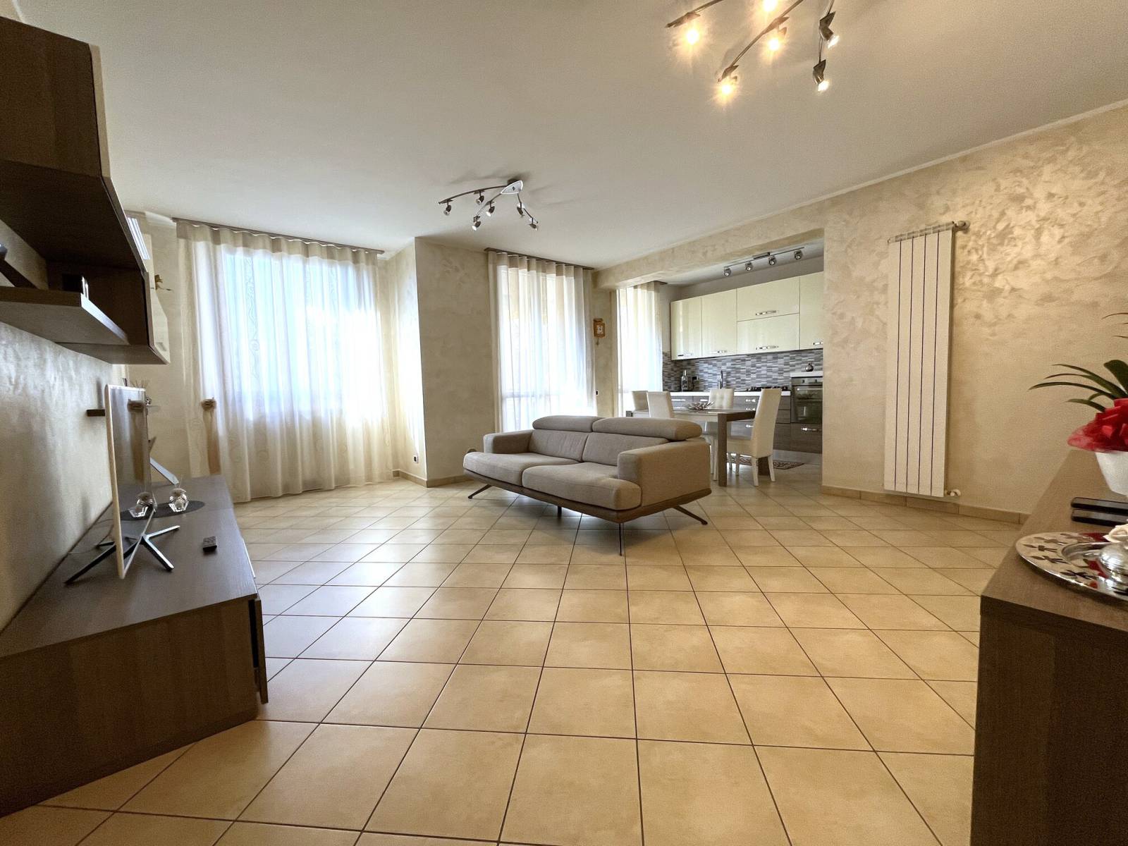 L’appartamento è così suddiviso: ingresso sull’ampio living con cucina a vista ed accesso al terrazzino vivibile, disimpegno, bagno padronale, camera da letto matrimoniale con balcone, secondo bagno, seconda camera da letto, ripostiglio e cantina.