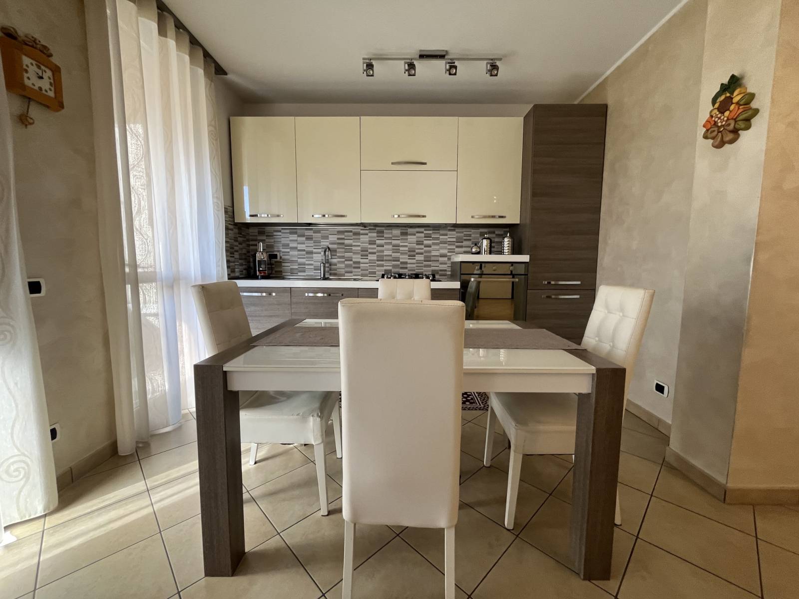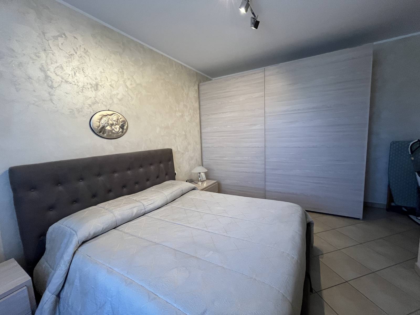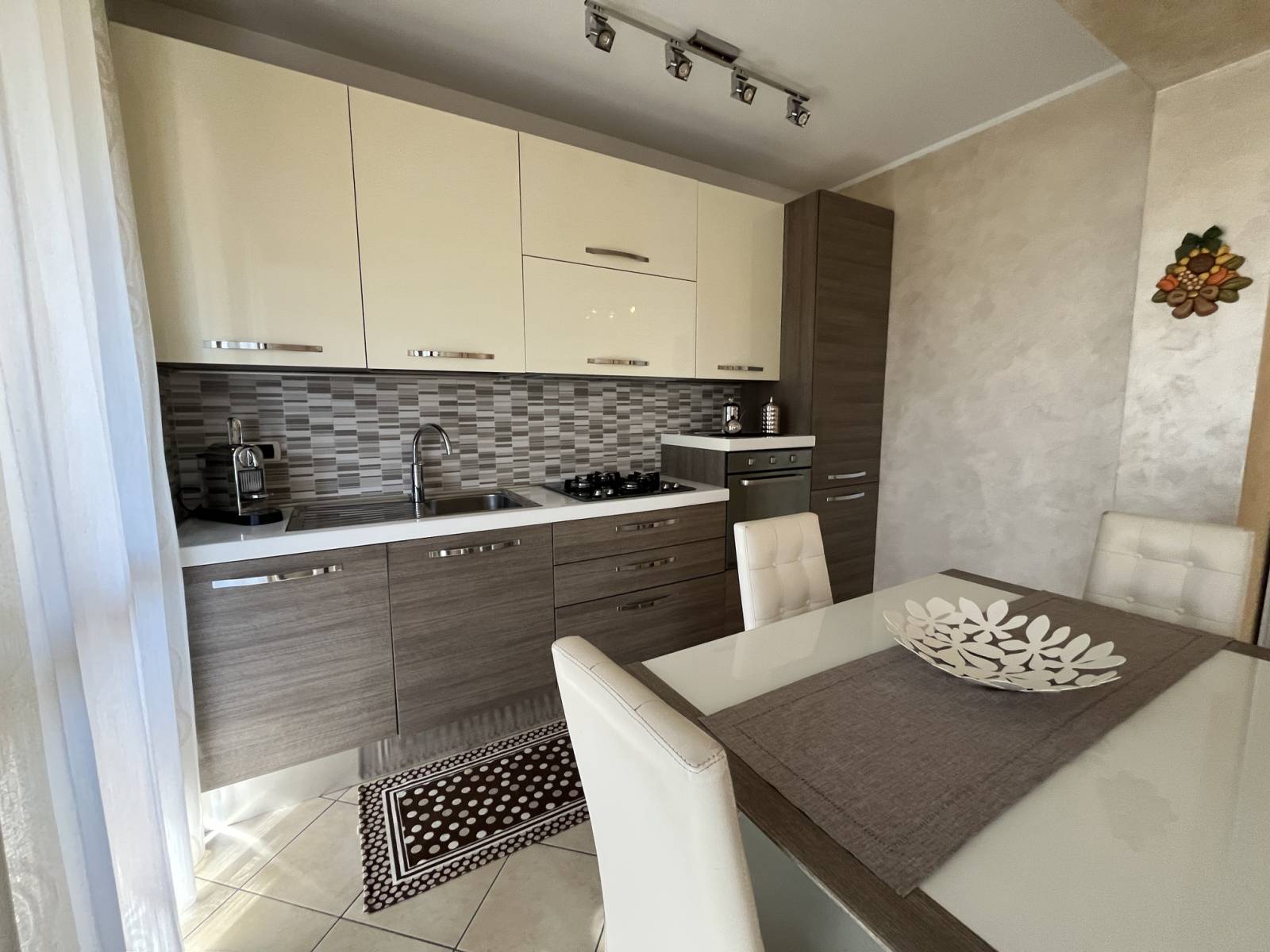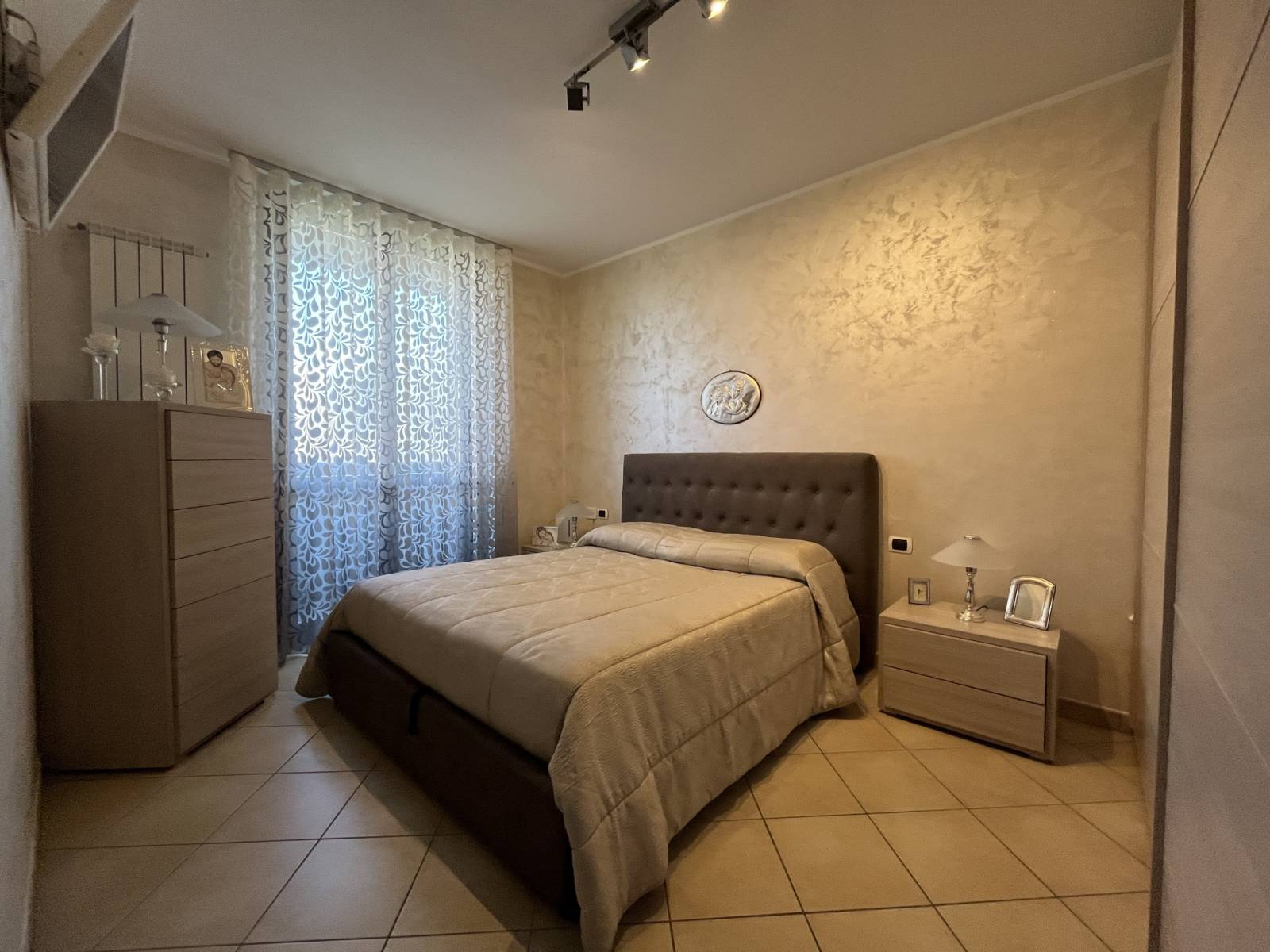 L’appartamento è così suddiviso: ingresso sull’ampio living con cucina a vista ed accesso al terrazzino vivibile, disimpegno, bagno padronale, camera da letto matrimoniale con balcone, secondo bagno, seconda camera da letto, ripostiglio e cantina.